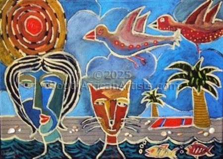 I am a full-time artist living in Cape Town. My art is a blend of fantasy, playfulness and simplicity. I am an expressionist at heart and search for expressiveness by means of exaggeration and distortion of line and colour. The purpose of my art is to reach a certain form: one does not necessarily look for an elegant effect, but for a general shape to satisfy the inner impulse. Over my 23 years as an artist I have experimented with different techniques and styles - from pop and pure abstract art to heavily textured expressionistic work.