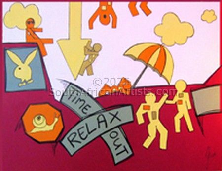 During her training as a clothing designer she ecquired knowledge of figure drawing, colour and textures. This ability proved to be of great ddvantage when she became aware of the intriguing expressions f the 'Xam people' (Bushman) in their Rock Art, while visiting sites known for this art form. Spiritual symbols in geometric forms which they used to communicate through in trance dancing, fascinated her and inspired her to use these symbols to create paintings with a strong modern feel but with a very ancient spiritual connotation. Her love for nature, people and experiences made her very creative and original.