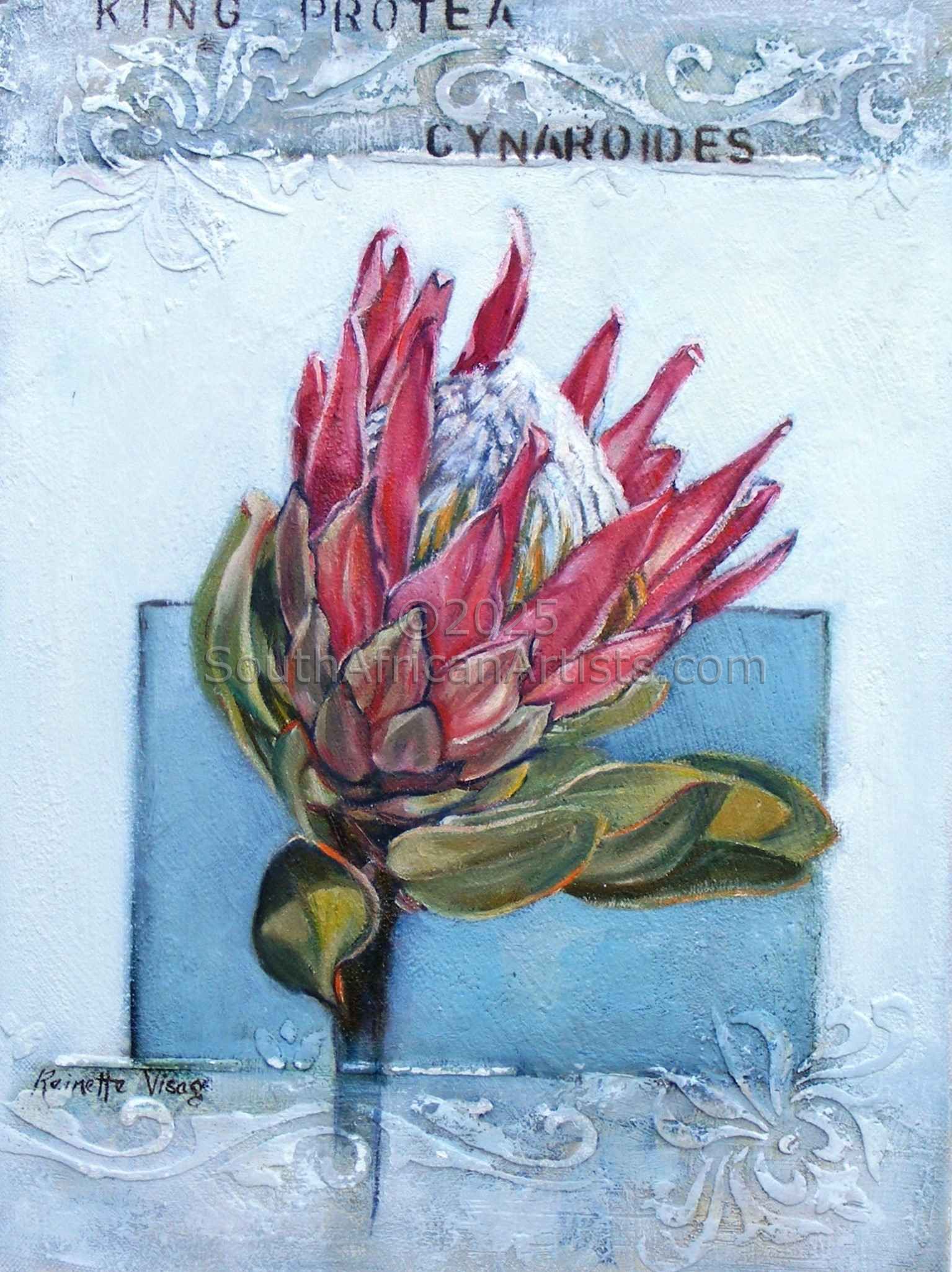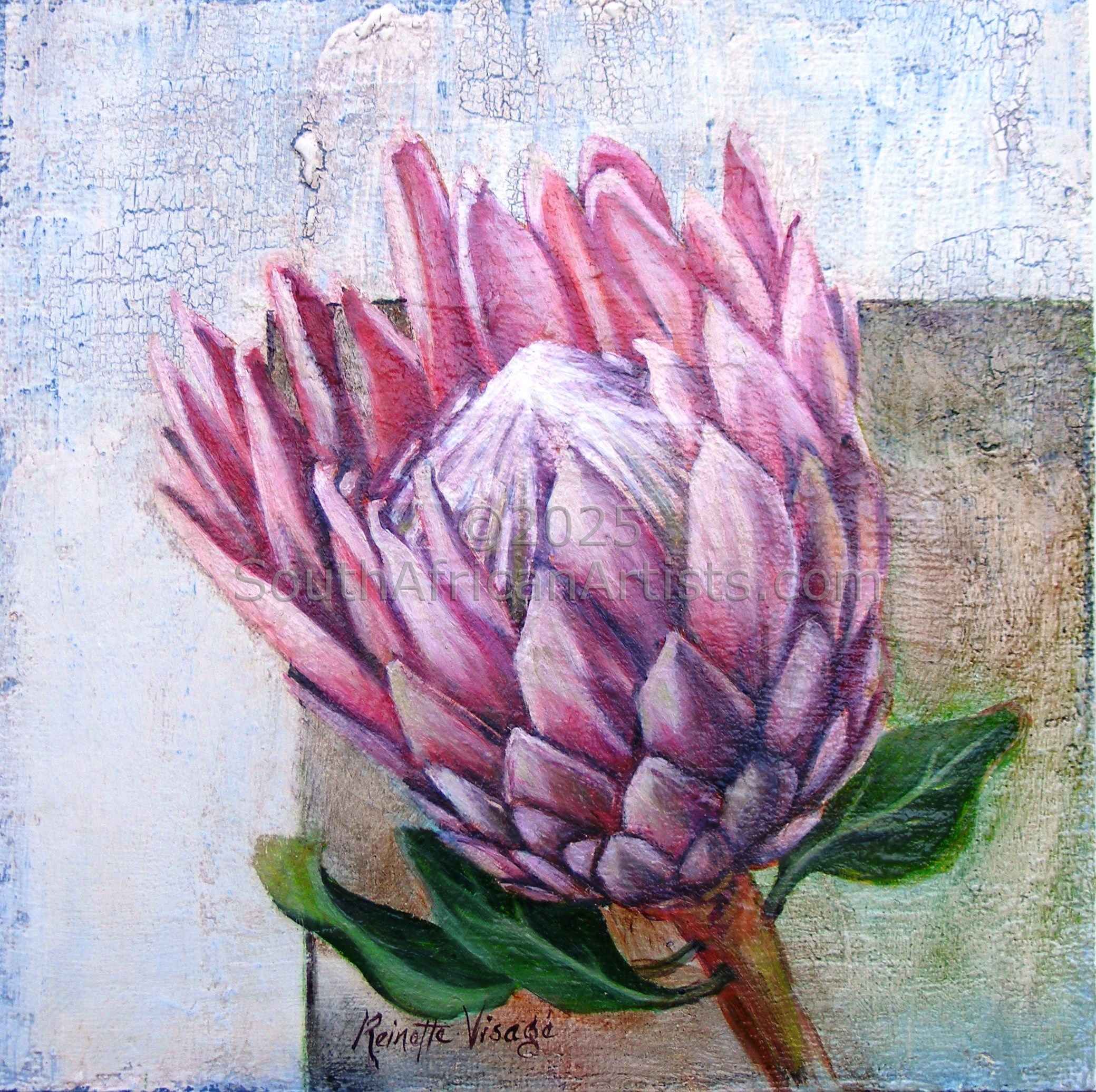 "Protea on Aged, Crackled Board"
