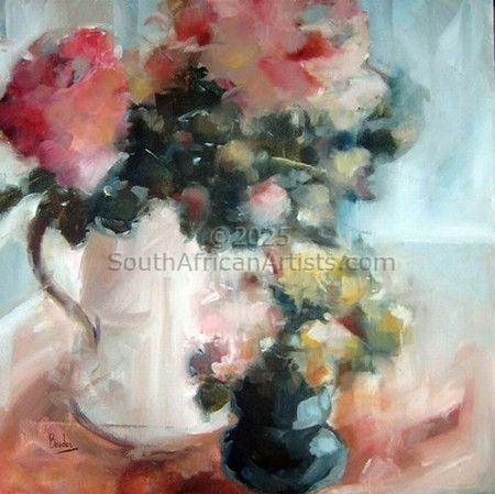 Ballito based artist, Sharleen Boaden (signed BOADEN) has been painting since 2008. Her romantic, whimsical style is instantly recognisable in her favourite subjects including roses, proteas, birds and paper dolls. Sharleen loves working with oils, acrylics and charcoal and pushing the boundaries in application of these mediums. Recently, she has found great enjoyment working on paper, particularly her hummingbird series of charcoal drawings. Sharleen's sensitive nature and love of all things pure and innocent is poetically expressed in her creations. She also writes poetry, some of which have been published in poetry compilations and on Instagram. Sharleen has been the co-owner of two art galleries and continues to be represented by selected art galleries and exhibitions.