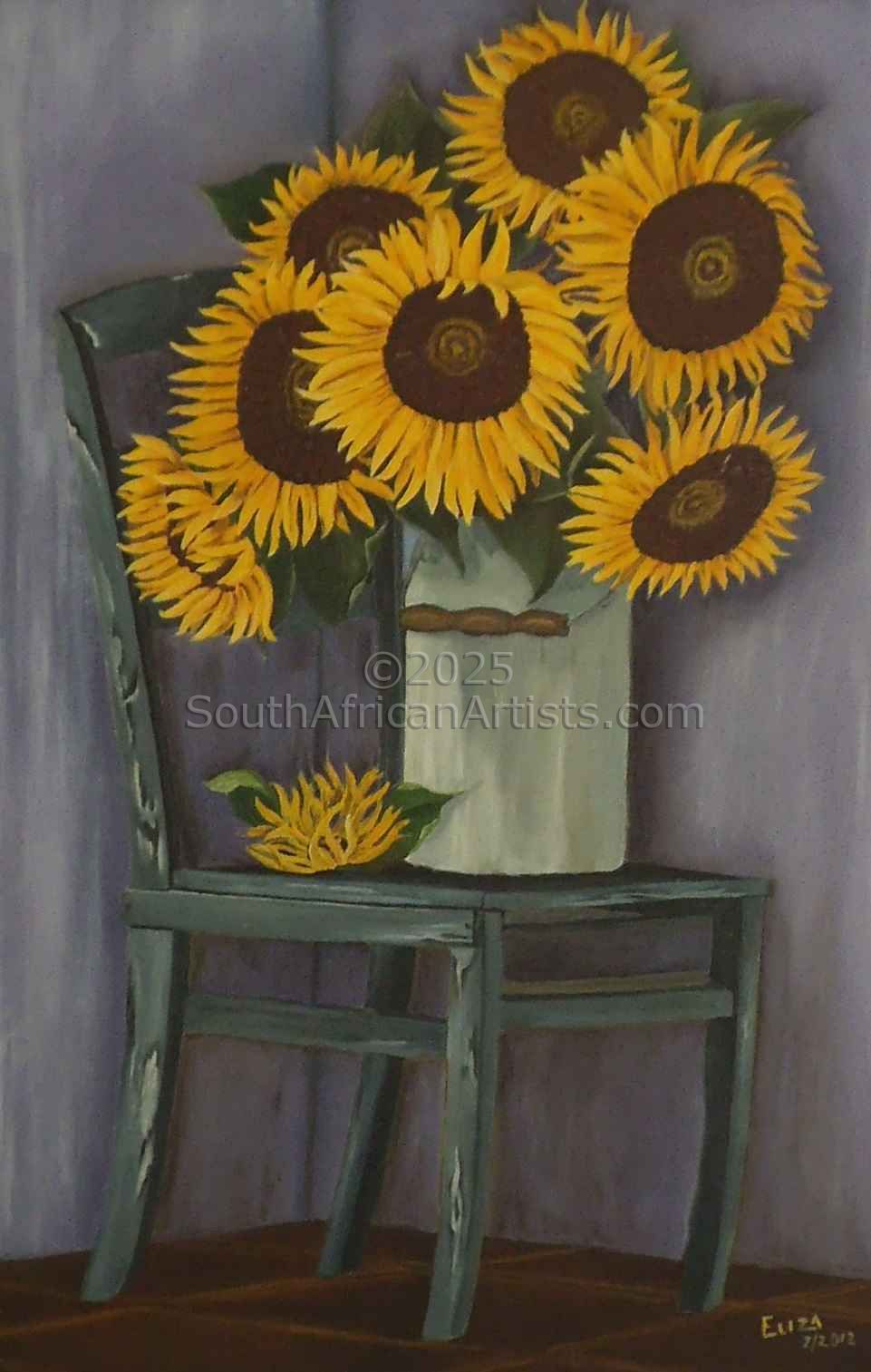 Elizabeth Mynhardt - "Sunflowers on Chair" |