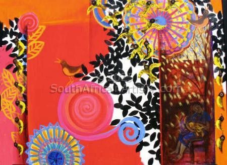 Marcella de Boom was a South African artist who preferred media was acrylic and Watercolours. She grew up in Pretoria and graduated with a BA Fine Arts from the University of Pretoria. Her works have been exhibited in countless solo and group exhibitions in South Africa, Namibia, Germany and Canada. She spent her time in Cullinan, where she lived in a cobhouse-cum-art gallery that she herself had built and that took a year to finish.