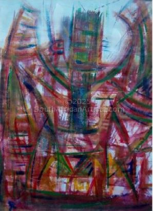 The mingling of the old and the new, contemporary and the traditional urban and rural cultures leads to an interesting interplay in the images and shapes in Phooko's works. Phooko uses the energy of his emotions and music to create his abstract and semi-real pieces. In his work, he expresses love, hate, pain, pleasure, strength and weakness in a rhythmic and melodically profane visual way. It[0x1]s important to elevate the soothing powers of music and art through elegance and the therapeutic might of art and music superiorly through that lack of restrictions. Notes are strokes and tones are splotches, abstract and real.