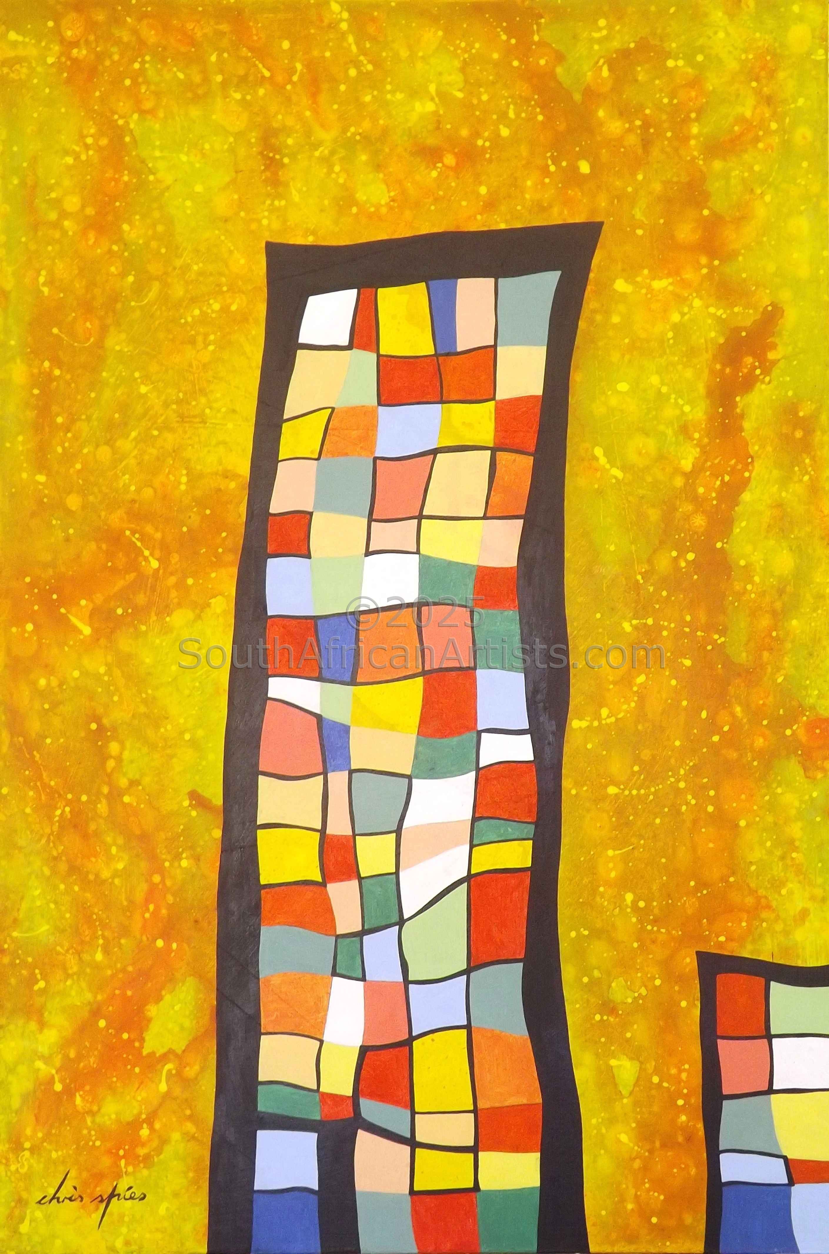 Private and corporate collections in: Australia Austria Canada France Germany Ierland Italy Netherlands Norway Spain Sweden Switzerland UK USA chris spies lives and works in Great Brak River, Western Cape.