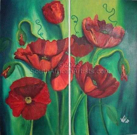 "Poppies in a summer garden- 2piece"