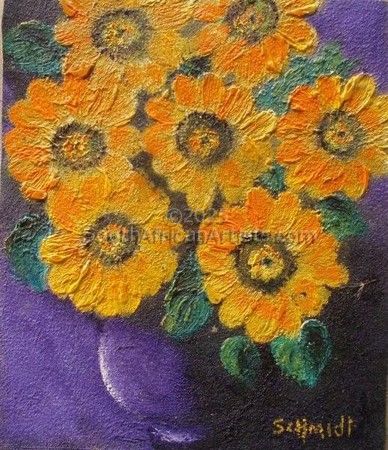 Ivy Schmidt, Born 6th February 1917 - died 27th November 2008. Always an individual - swimming upstream. Ivy never painted to please anyone but herself. She saw the world in her own hues. Crazy, brilliant, fiery sunrises over the Indian ocean. Taking 'mental photographs' of all her favourite images, Ivy would retire to her studio and paint like crazy, sometimes all through the night.