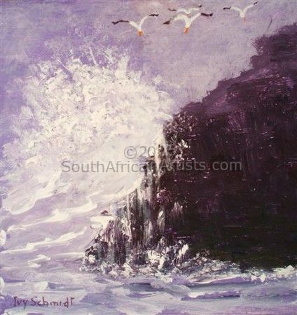 Ivy Schmidt, Born 6th February 1917 - died 27th November 2008. Always an individual - swimming upstream. Ivy never painted to please anyone but herself. She saw the world in her own hues. Crazy, brilliant, fiery sunrises over the Indian ocean. Taking 'mental photographs' of all her favourite images, Ivy would retire to her studio and paint like crazy, sometimes all through the night.
