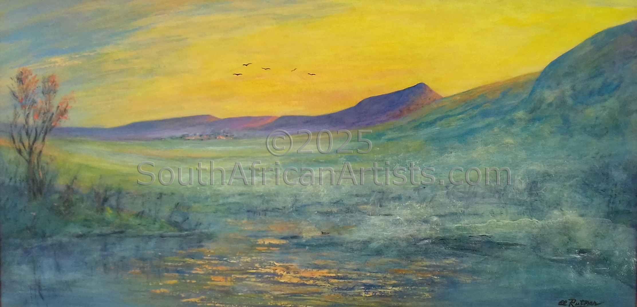 During 2003, after 41 years, Ella and her family relocated to the beautiful Hartbeespoort valley to retire. Ella's favourite subjects are genuine well-known SA landscapes of the Drakensberg, Cape, Pilgrimsrest, specific waterfalls, marine life, interesting rock formations of the Cedarberg and Cango caves.