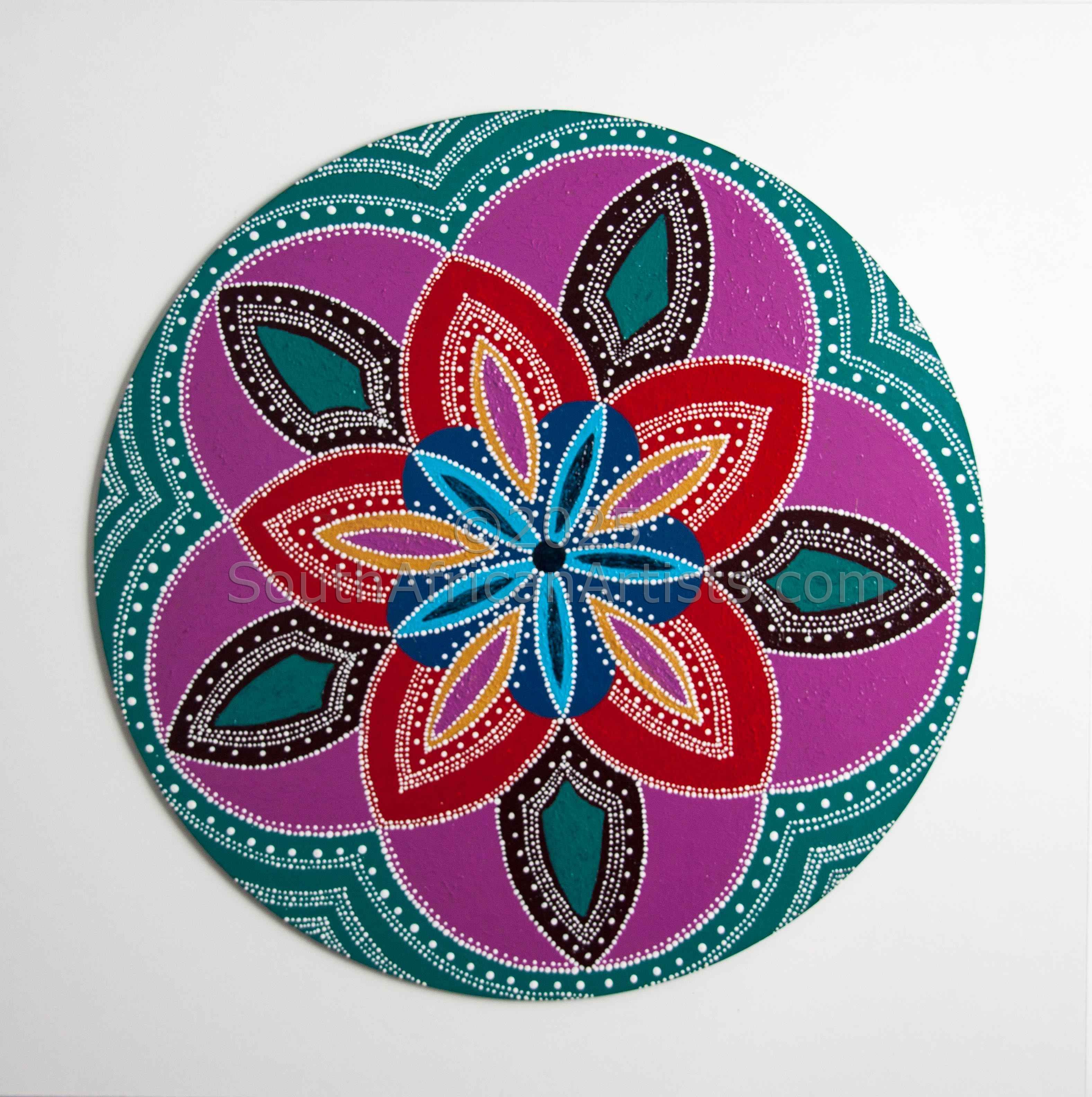 Laurinda had a Solo exhibition in March 2015 in Great Brak and launched her first colour in book in September. She also offers workshops on Mandalas giving individuals the opportunity to be drawn into a world of, serenity and peacefulness.