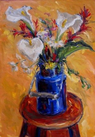 My subjects are drawn from the everyday, from the world around me and the people in it. Good design and contrast in colour, texture and form are all important Price Range US$ 156-729 Exhibitions Numerous group exhibitions in Johannesburg, Graaff-Reinet, Port Elizabeth, George, Mosselbay and Kimberley. Two person shows Cuyler Street gal: 2001, 2004. Three women show Strydom Gal George 2012. Solo exhibitions: Cuyler Street Gal PE 2007; Montage Gal PE 2012. People who chose Mien's work also chose work by: Find other: