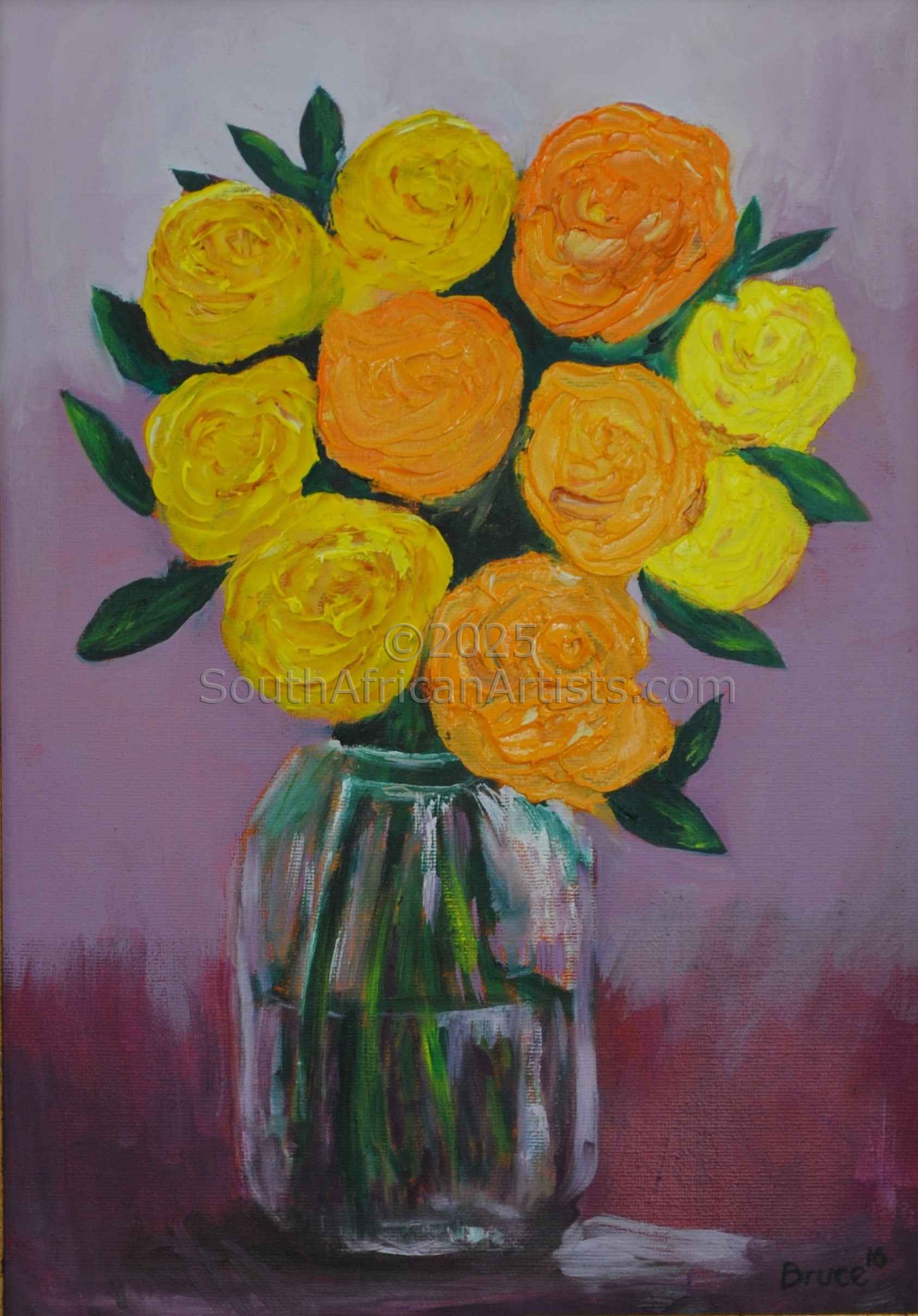 I'm inspired by what other artists do with all sorts of media. As many artists - as many creative ideas. I am comfortable in both oils and acrylic. I enjoy commissioned work. What else inspires me? The magic of paint, light and shadow as they all interact to suddenly bring your piece to life. Price Range US$ 58-333 Exhibitions Volmoed Art Room Exhibition 1 to 10 December 2016, 30 Nov to 13 Dec 2017,in the beautiful Hemel and Aarde Valley, Hermanus Fyn Arts Festival 2018 Education Ongoing mentoring. People who chose Bruce's work also chose work by: Find other: