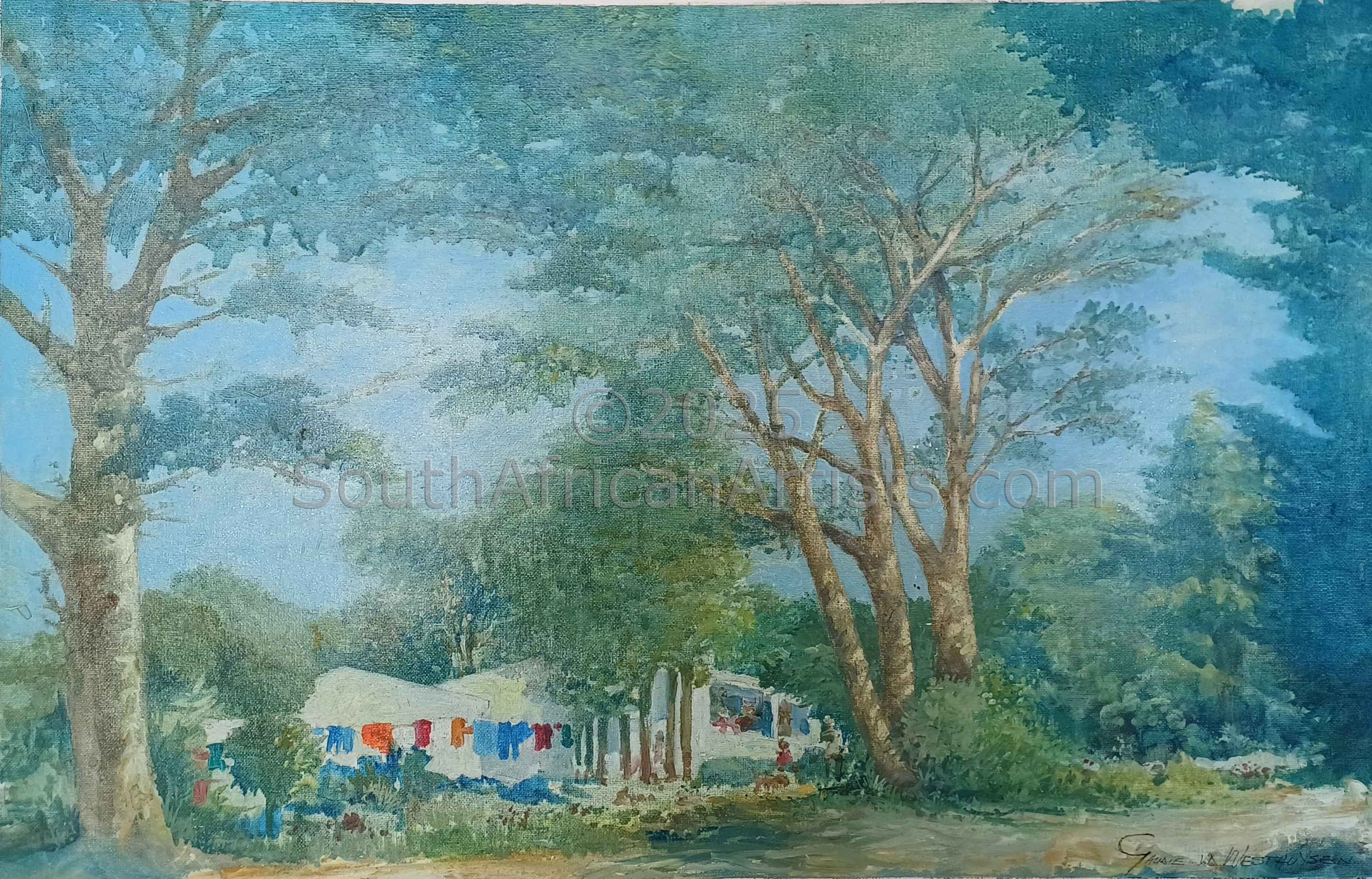 The late artist was born in Pretoria but has lived in the Cape Province since 1980. He has studied at the Pretoria Teachers Training College (NKP) and at the University of Pretoria. As far as his art career is concerned, he has studied at various art institutions. * The Pretoria Technical College under Walter Battis. * The University of South Africa under Prof. Skawran. * The Kraft Pottery School in Pretoria under Andr[0xC3A9] Aucamp. * The Pretoria Technicon. * The Ruth Prowse Art School in Cape Town under Eric Laubsher. * The Paris American Academy in France under Cruz Raphael Gomez-Lopez from Venezuela and Prof. E. Schonenberg from the USA. **He ran three art schools, in Mossel Bay, Wellington and Paarl. His works can be found in private collections in South Africa and Germany.