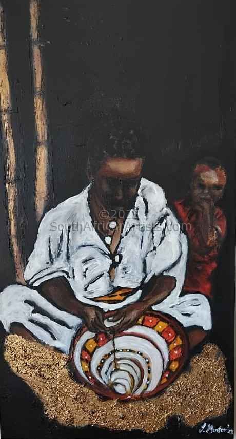 Jacqueline Ann Mentor (Jacqui) At the age of 6, my father put a pencil in my hand and showed me how to draw a man's face, starting 1,2,3 showing the image of the face on the side. Growing up in a tough neighborhood in SA, Cape Town, allowed me to concentrate more on my art than getting involved with the wrong habits of life. My works are a constant outpouring of singular impressions: clearly isolated images that capture flashes of emotion, changes in perception, or moments of recognition. My art is a true reflection of my soul on a pedestal. In my little kitchen, I paint the deepest and thoughtful, meaningful paintings of my inner being. I give meaningful thoughts as much consideration as monumental ideas: nothing is more important than anything else and every small thing has its place. Whoever will buy my art, will take a piece of me with it.