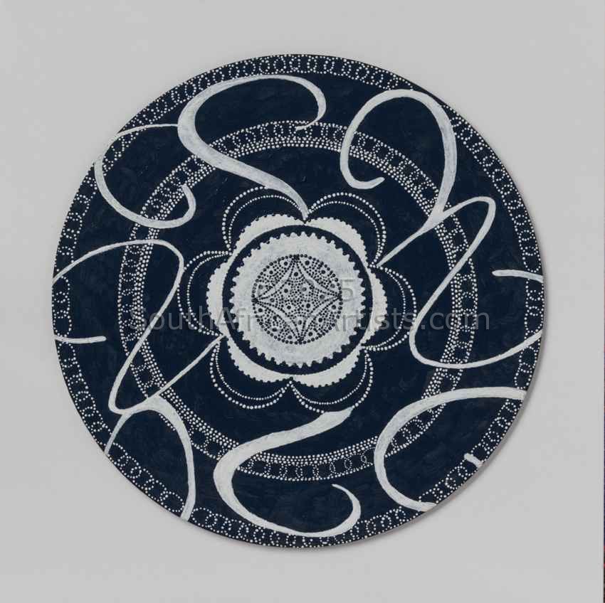 Designing mandalas utilizing all and any tools available give rise to viewing objects as a medium to create and redefine their purpose. A pre conceived outcome is seldom part of the development and design of her mandalas. It is as if each mark, colour and pattern has a life of its own mounting into a perfect imperfect creative art work.