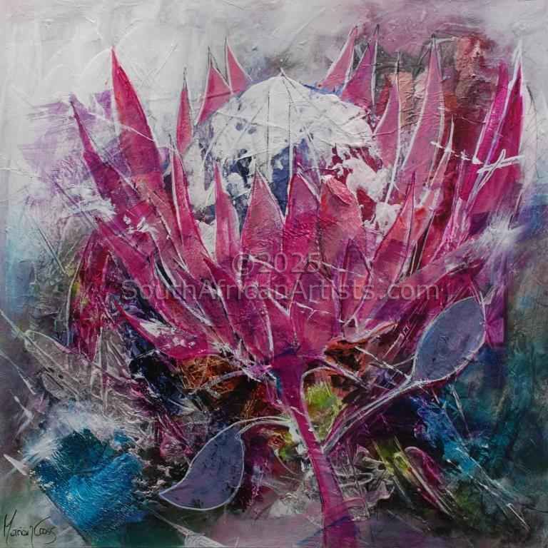 Colour, rhythm, form, the landscape which surrounds us,the glow in the early morning,the heat in mid January,the wind as it whips over the mountain, these are but some of the moments which inspire my work. Painting 'en plein air' or in the studio, I take my reference from nature. Passionate about painting, I graduated from UNISA with a BAFA and continued at Wits to do a postgraduate diploma in painting which I passed with a distinction. Since then I participate in many group exhibitions, as well as having solo exhibitions. I also do 2 big shows a year at the Cape Town Convention Centre, the Decorex as well as the Homemakers. I have won several awards and October 2018 I featured in am article about my work called:' Breaking all the Rules'. My work has found homes all over the world and it is so wonderful to be able to share my vision as an artist. Price Range US$ 310-1,239 Exhibitions solo: AVA Cape Town 1999 Education Bachelor of Fine Arts - UNISA; Advanced Diploma Painting - Wits; People who chose Marion's work also chose work by: Find other: