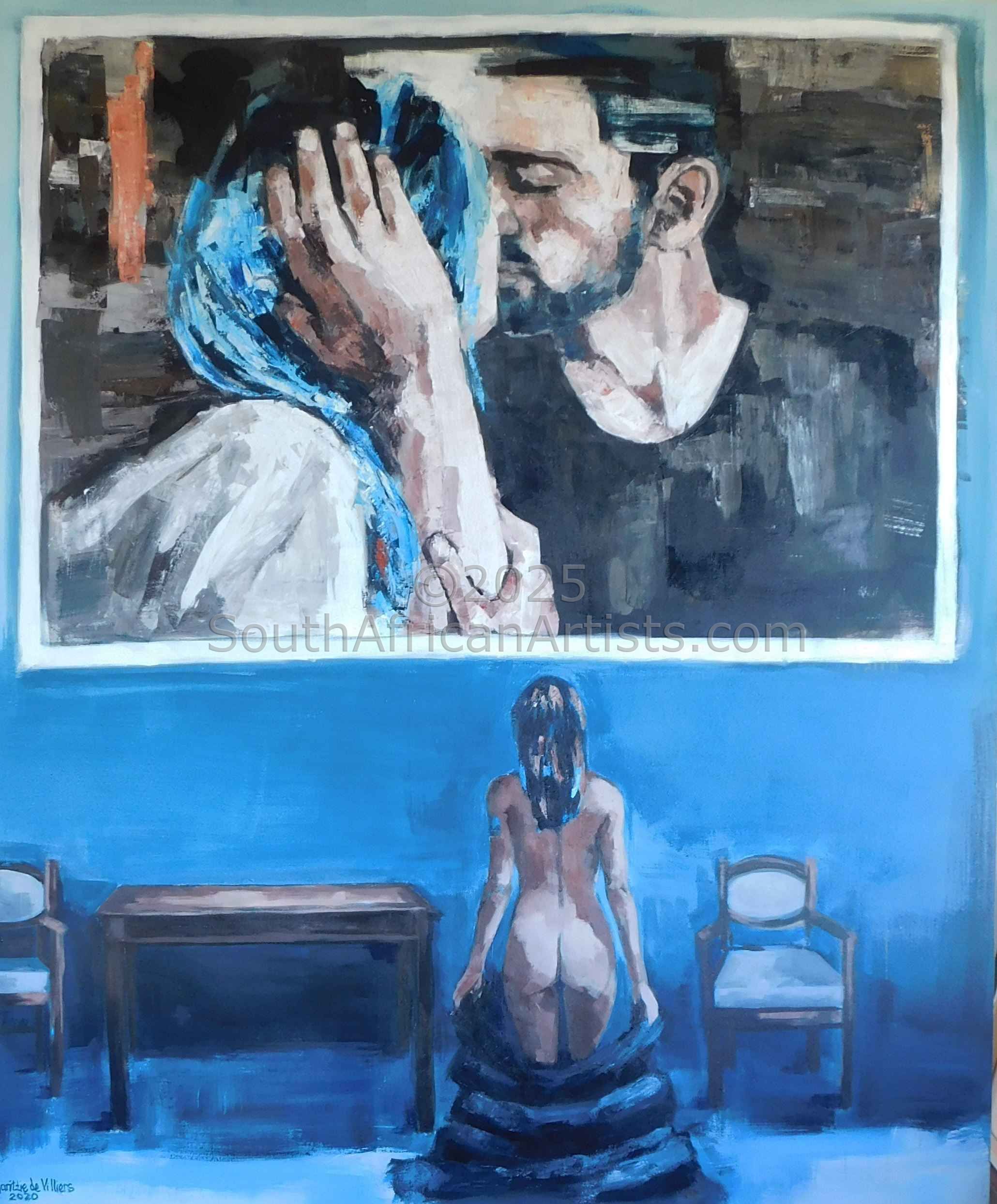 I grew up and matriculated in Potchefstroom and earned my degree B.A. (Communication) from Potchefstroom University. Travelled between 1994-2003. By land- Egypt, USA, southwest, and Midwestern states-special interest Art and Native American Reservations. By sea on a yacht- South America, Caribbean Chain up to Bahamas and again USA on the East side. Live south of Washington for a year or so and sailed south again- to the Caribbean. Faces fascinate me endlessly. Creating emotions and atmosphere through the use of colour in the human face and figure are the most important elements in my paintings. I make flat-surface "MOVIES" when I paint. I become the figure, the emotions and landscape of thoughts. My memory serves me well in remembering people and the atmosphere while experiencing situations. I easily recall the smell of the turqoise Caribbean Sea, the atmosphere of a busy street in Cairo, the easy-going but mysterious sounds of a foreign language. The excitement of hearing a mix of Dutch-Portuguese-English, Cerveja on my lips, the feverish humidity of walking in Fortaleza, Brazil. The human being in all it's aspects interests me. I am attracted to the exotic, the gypsum, and passionate side of life. Light and dark is often used to create tension and a strong feeling. I enjoy painting the old and young, pretty and less pretty...I live and work in Cape Town.