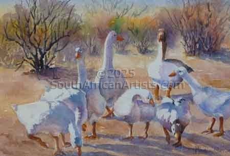 About Minnie We have built a house in Vredenburg Estatate, Somerset West, with a lovely view on Table Mountain. The mountains and surroundings are beautiful and most inspiring. When we travel I take photos of scenes that I find exciting and in my studio I will paint a painting with emphasis on light and shadow and lots of colour. Price Range US$ 77-467 Exhibitions Many group exhibitions and 5 one-man exhibitions.I am an Associate of the Watercolour Society of South Africa, belong to many Art societies and have exhibited at Kirstenbosch with SASA(South African Society of Artists) Education Qualified Physiotherapist People who chose Minnie's work also chose work by: Find other: