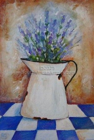 Lavender Flowers in an Enamel Jug