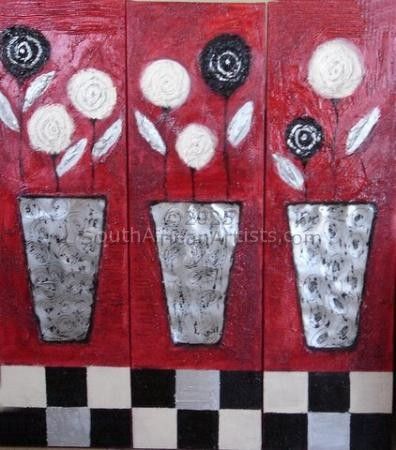 Red, cream and black rose flower pot