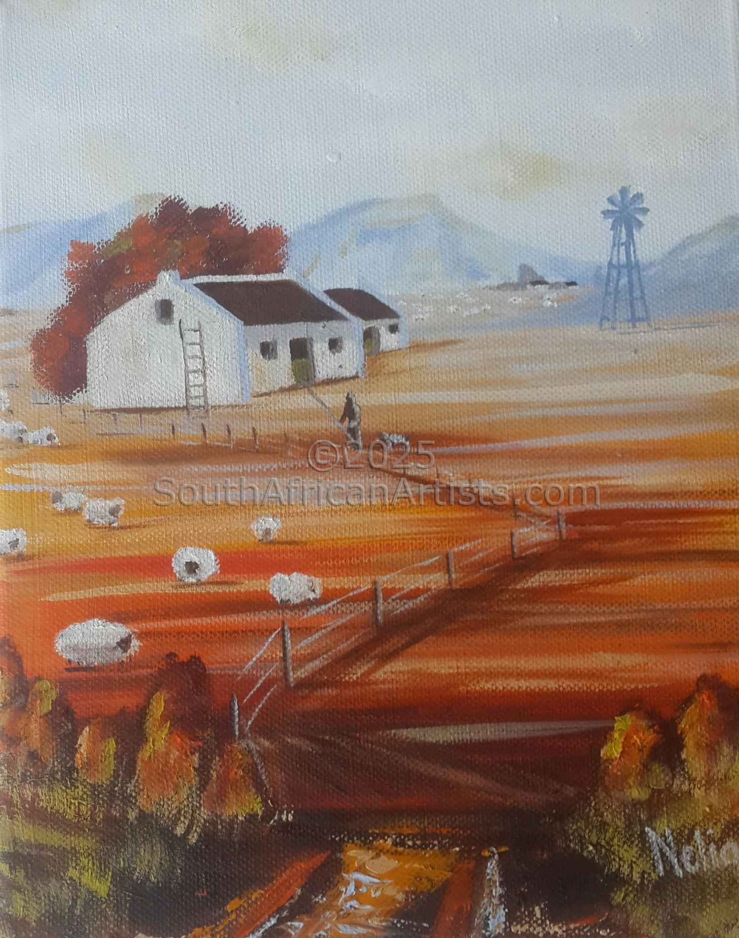 Cape Autumn With Sheep and Windmill
