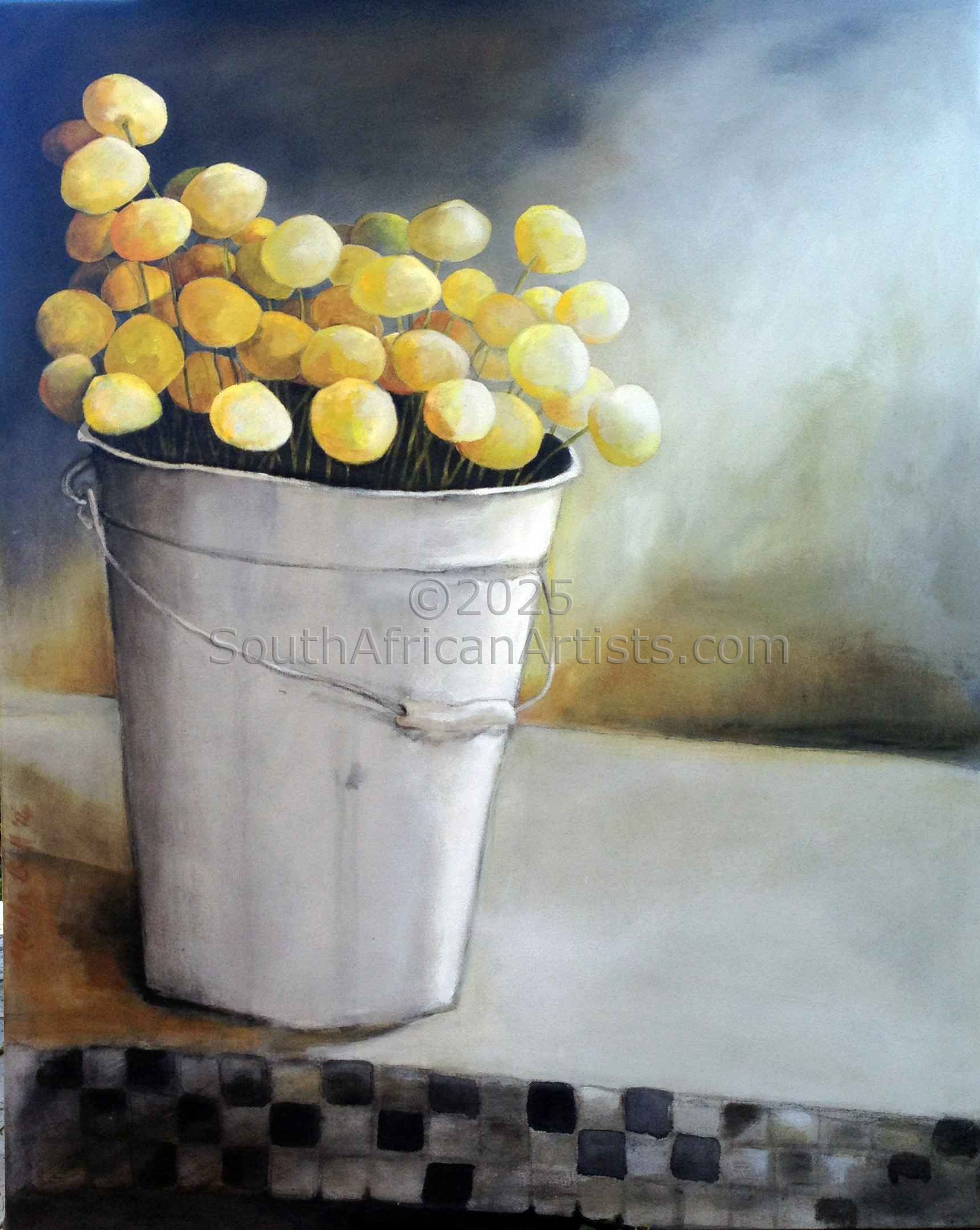Craspedia in Old Milk Pail
