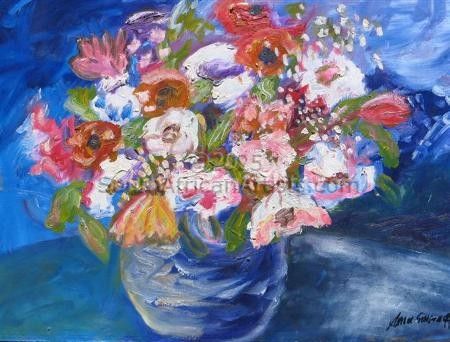 Mixed Flowers on Blue