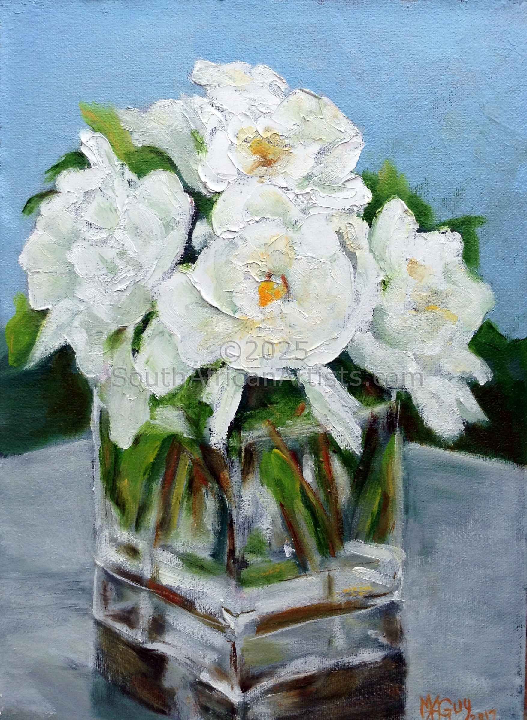White Blooms in Glass Vase