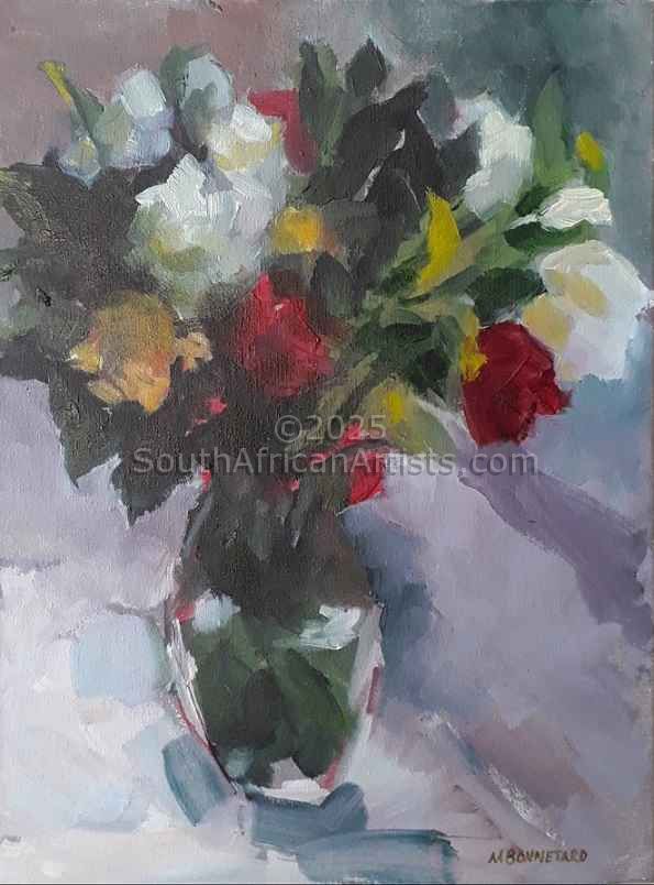 Still Life with Red, White and Yellow Roses