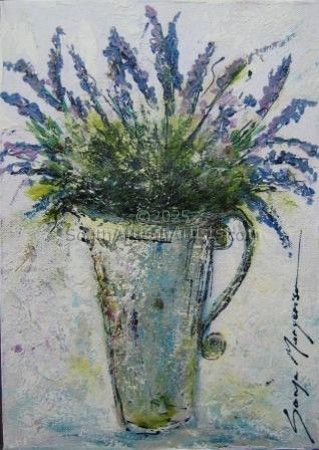 Lavender Flowers in Enamel Pot