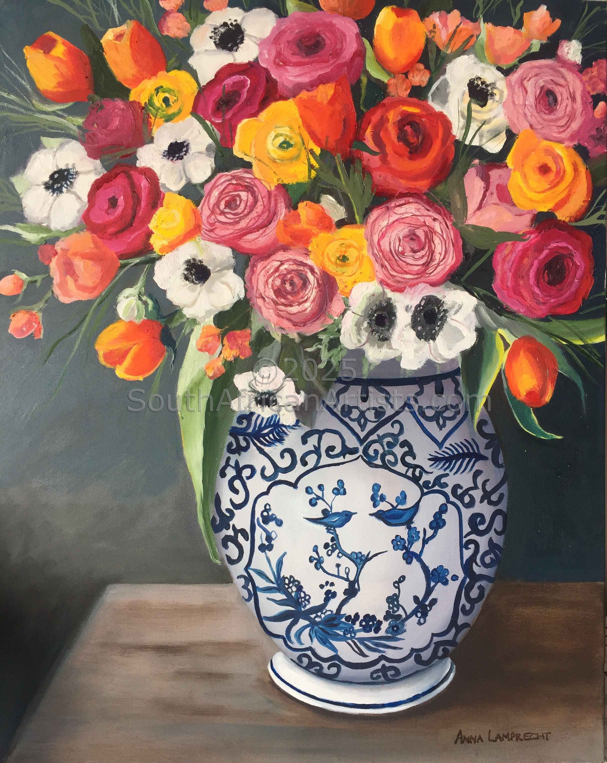 Lilac Roses in Ebony Vase