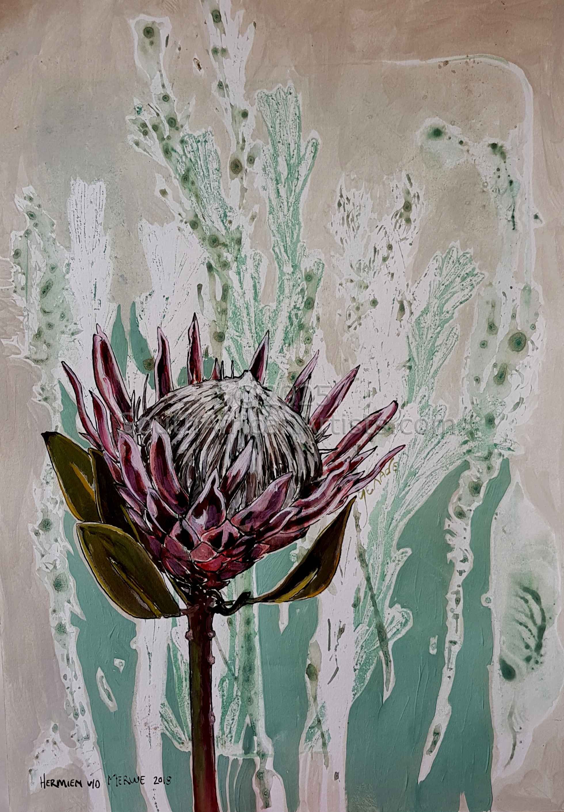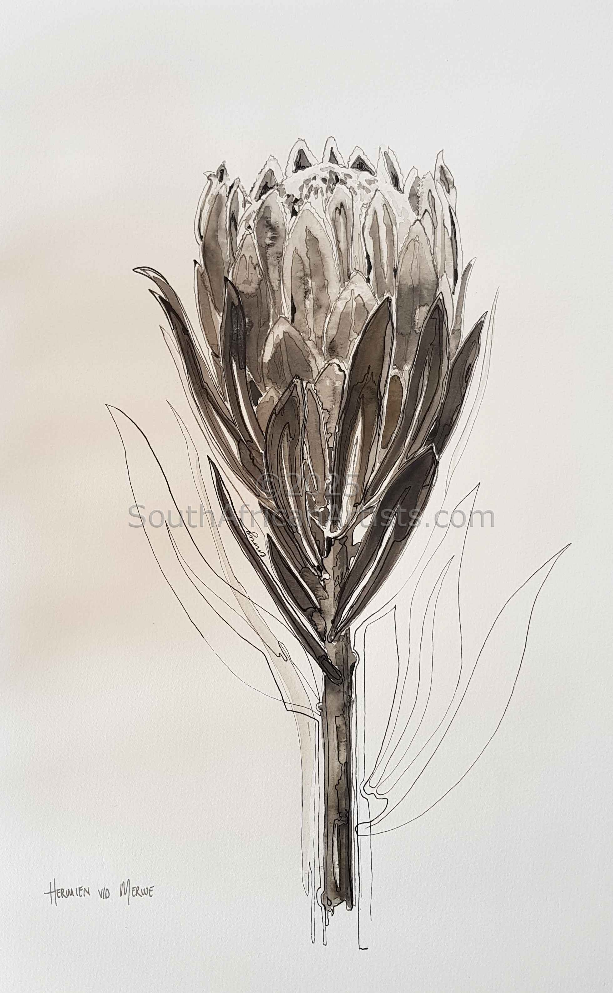 Fynbos Ink Wash, 'Enough', Protea