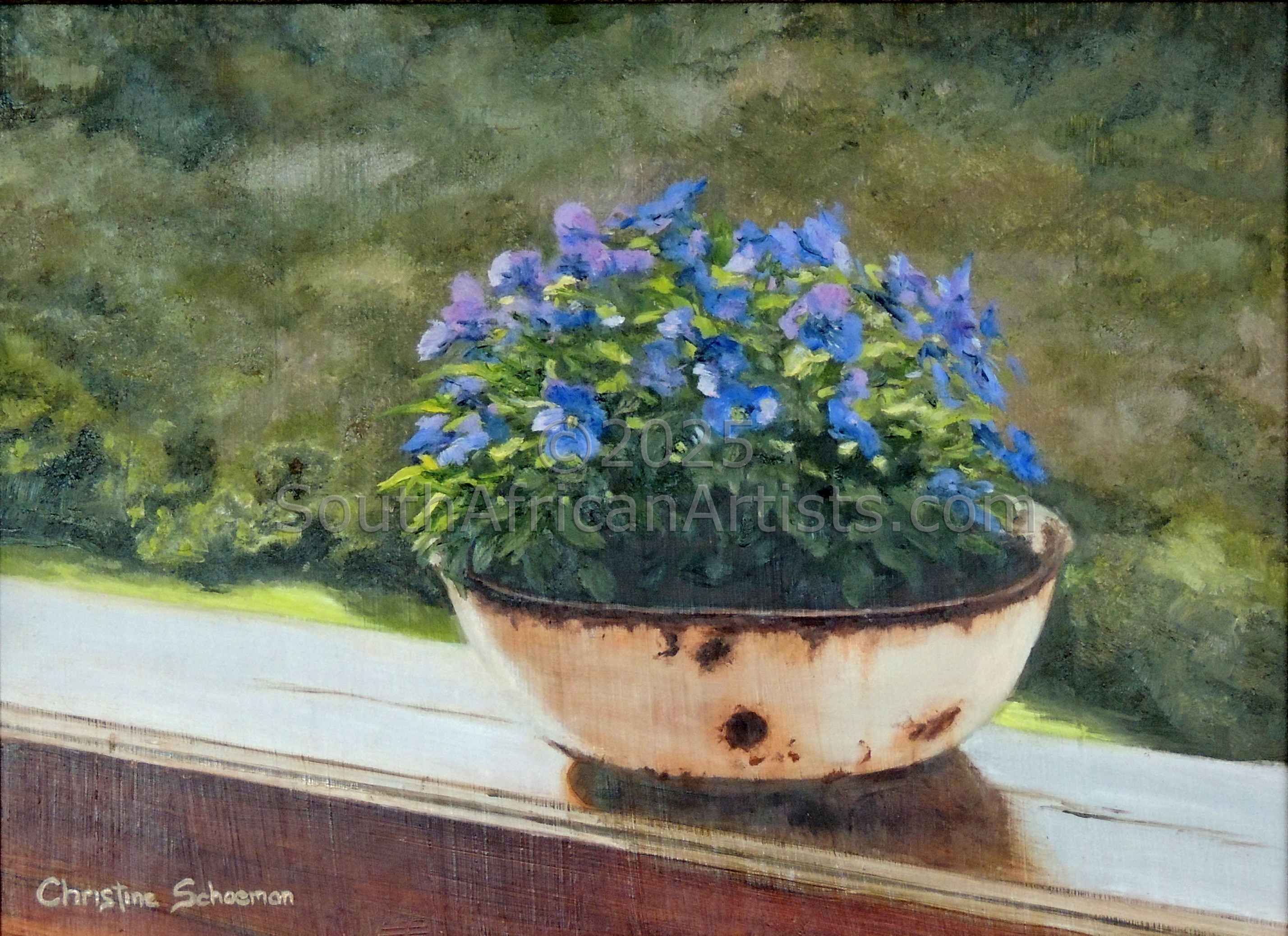 Violets in Rusty Bowl