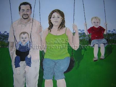 Family on Swings in Park