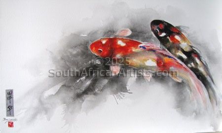 Koi in Lilypond Mixed Media 1