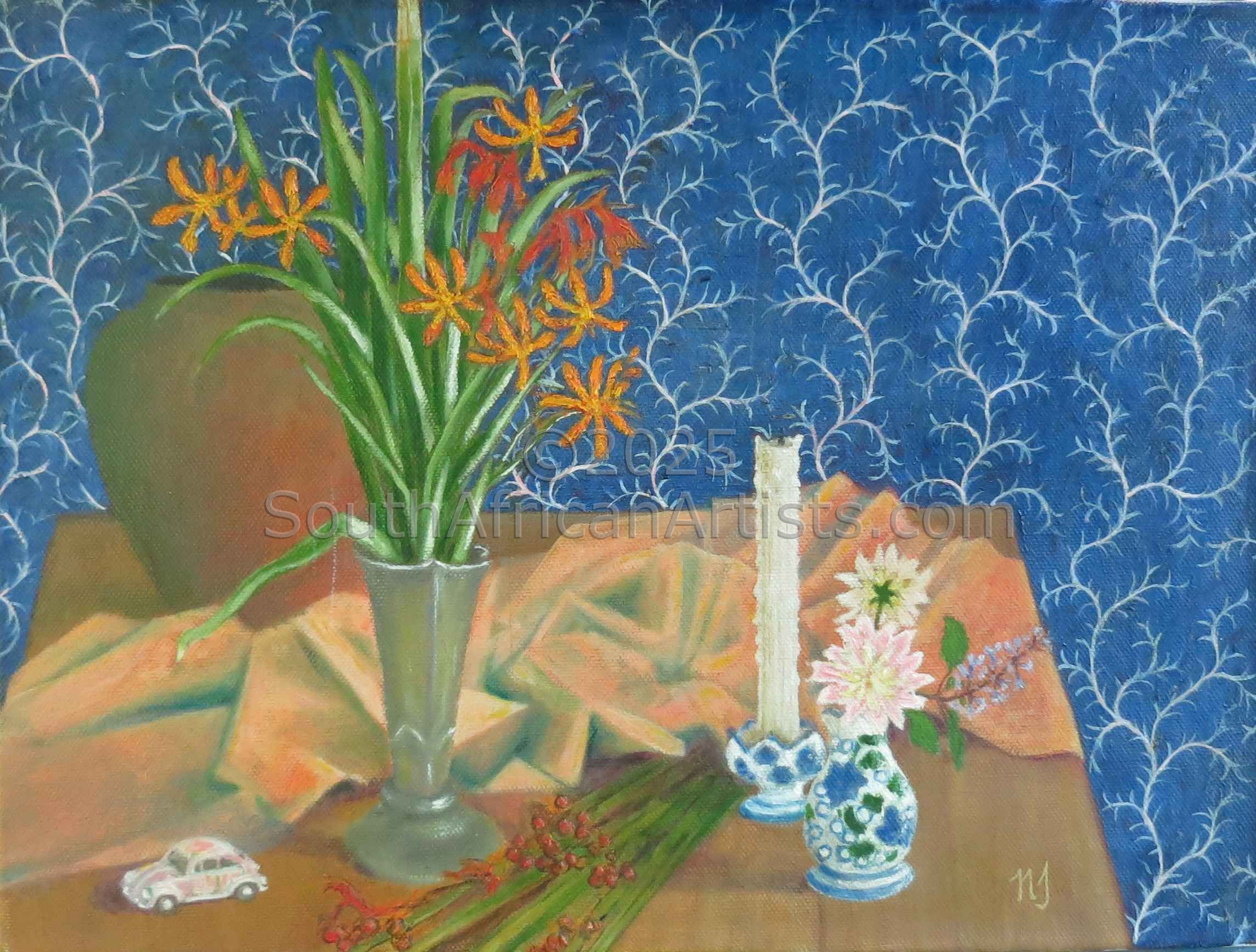 Still Life with Crocosmia and Beetle