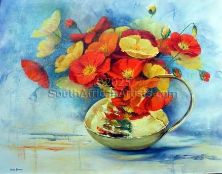 Poppies in Blue Vase