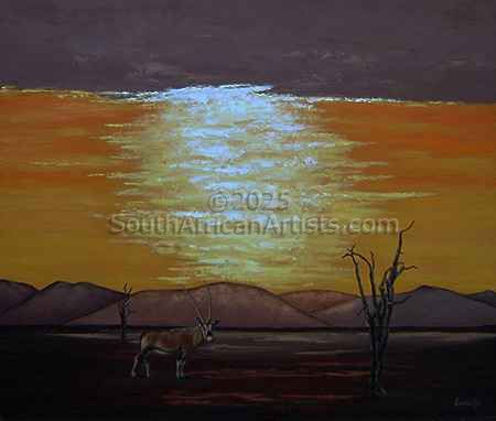 Sunlit sky with Gemsbok