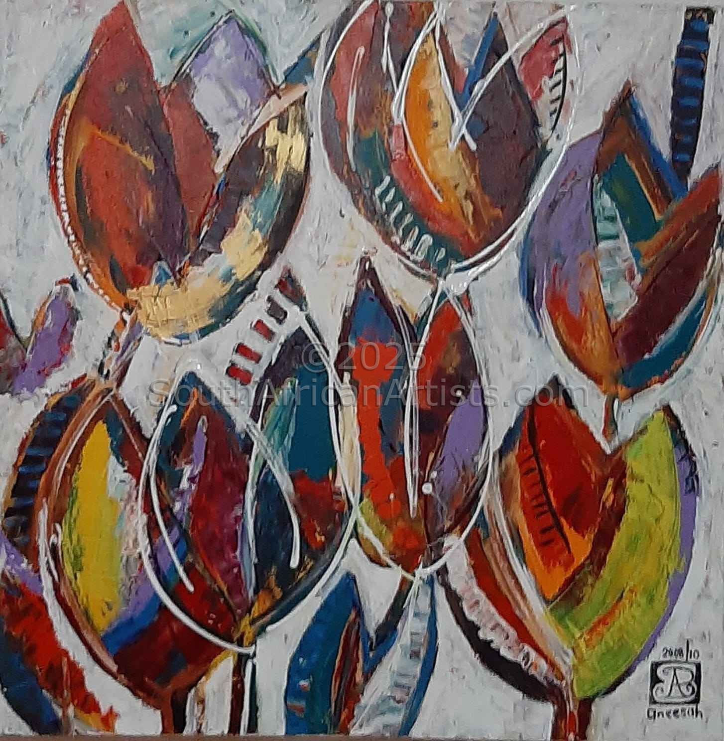 When asked about her inspiration and her work this is what Aneesah says: "My paintings reflect my roots - my rich, exotic and colourful cultural heritage and background. Painting and the artwork I create is an extension of myself and my connection with the Essence of Life. Painting helps me remember who I am and what I think life is all about. Painting reflects my passion for connection and personal integrity as well as creativity and courage.