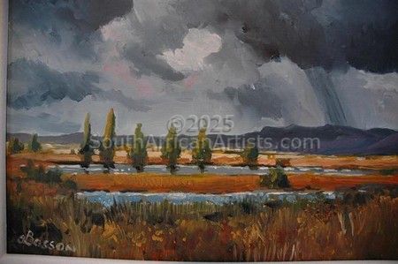 Arnold studied horticulture, landscape architecture and town planning. He has had no art training as he grew up in Magaliesburg on a farm and attended agricultural schools where art was not given as a subject. Arnold has always enjoyed art and is totally facinated by clouds and the movement and moods thereof ,"clouds are so alive". He does not paint full time as he is a landscaper , hence his love for nature and landscapes.He believes one should share art with everybody no matter what form thereof or what mediums are used.He attended an art workshop with Dale & Mel Elliottin Villiersdorp in 2010. Price Range US$ 153-2,551 Exhibitions Bellville Group exhibition 2009 Education Nat Dipl.Parks & Recreation People who chose Arnold's work also chose work by: Find other: