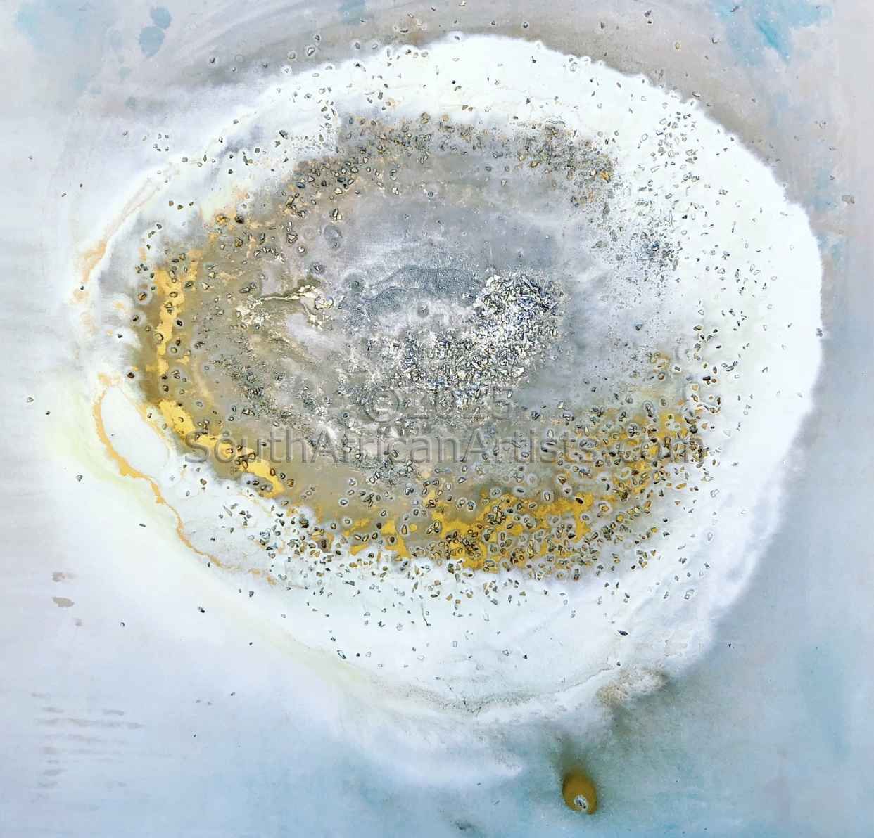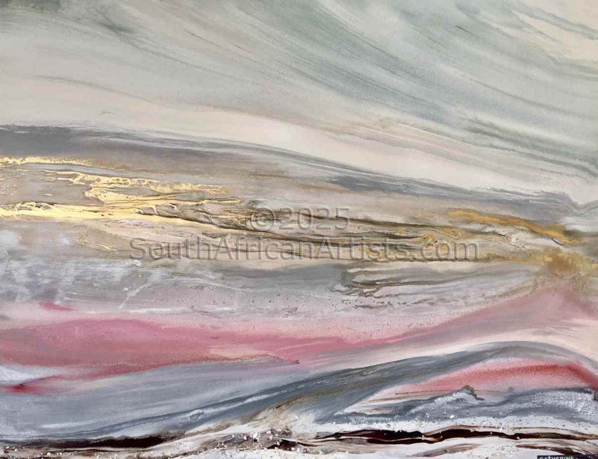 Catherine's work captures the beauty of Nature. She explores and reveals the weathering effects of exposure and time -unpredictable, yet certain. There is a sense that change is constant - creation, growth, weathering, erosion, repair, decay and rebirth ... The rich surfaces on her canvases reflect the cyclical processes of Life. These prices are standard throughout the world for this globally collected artist but South African residents do receive special discounts for a direct buy from the artist as Africa is the original place of Creative Genesis and where this journey begun. True to her appreciation of Natural Law, the nature of her style is process driven. The artist uses gravity, chemical reaction and evaporation as her allies. When handling the syrupy paints she spills, heaves, rubs, sands back, dilutes and drips. Layer upon layer of shear and translucent earthy glazes create an ambiguity of depth and floating form. Equally at home in a cutting edge modern environment or illuminating antique gems, these works live and bring life to their surroundings. The art has become especially reveered for its incandescent nature in that it changes as the light of the day changes and then profoundly again at night with the onset of evening and internal lighting changes. Quite a magical process to enjoy day in and day out. Because the light is different each day, so us the art work...ever changing.