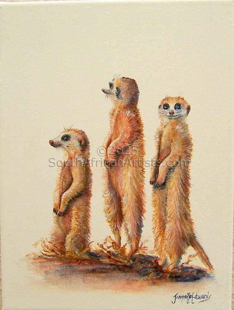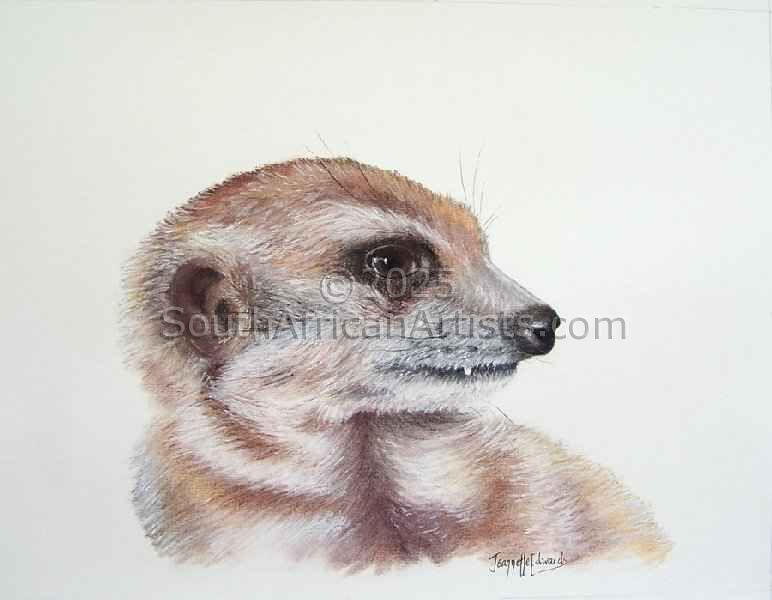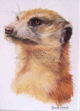 "Art Washes away from the soul the dust of everyday life." A quote by Picasso which I love. I love animals and nature and although I have had no formal training, I spent many years with one of Durban's best teachers Gail Baxter and belong to the North Coast Art Group. I paint because I want to convey to the viewer the miracle of nature. Art is my passion. I have become known as the "Meercat Artist" in our area as I love their feisty characters.
