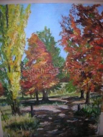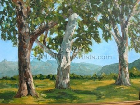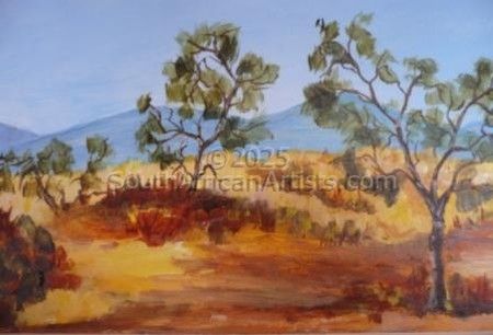 I have had no formal art training and started out as a potter. Unfortunately I was not able to continue and turned to paints and brushes. I have attended various courses and workshops with artists such as Dale Elliot, Paul Botes and Sue Kemp among others. The Art Society in Sedgefield is very active and I was Chairlady for several years. We are lucky in the area to be able to paint plein air and this has helped me with aerial perspective and generally helping to capture the mood which is not always possible when painting from photographs only. I only paint places I have visited and all photographs I use are taken by me. South African scenery is stunning and magnificent. From towering mountains of the Drakensberg to the long, ever changing coastline and sea. The plains of the Free State and wonderful colours of the Karoo. The abundance of flowers and animals. All these are inspirations for an artist and I have a passion to interpret what I see so others can feel the mood of a bright sunny day in summer or the damp misty days in winter.
