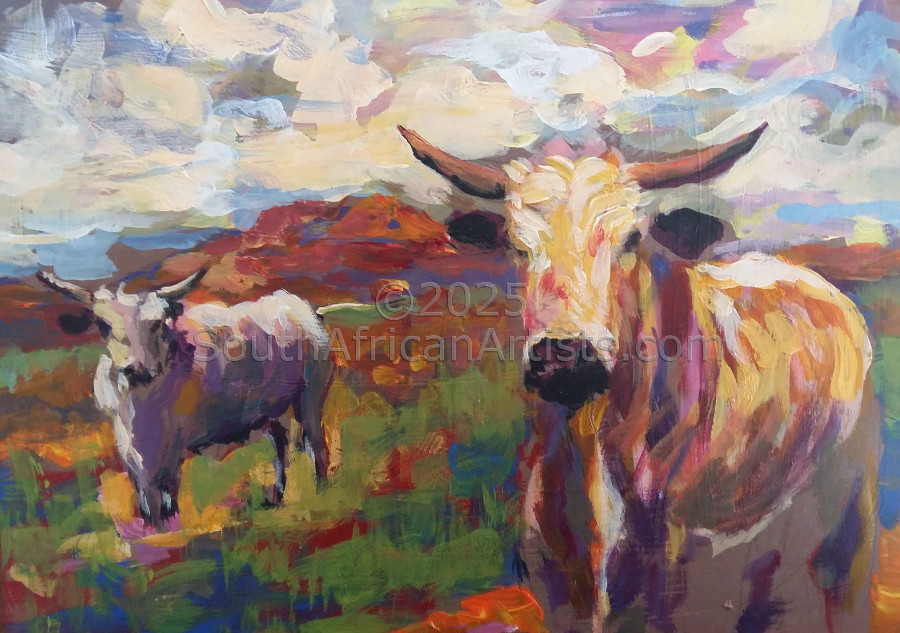 Nature is my inspiration. I respond to the landscape of the Western Cape, the mountains of the Western Cape, the Karoo,the Eastern Cape and the Overberg.I love trees, especially those of the Western Cape.The deserts and landscape of Namibia is also an inspiration.