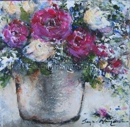 Art has always been Sonja's passion. As an 8 year old Sonja won her first art competition. Her inspiration comes deep within and her favourite subject.... flowers.... Happiness, love and life are portrayed in flowers from using a mixture of different colours to create a mood. Sonja is also inspired by nature, surroundings and by her loving and supportive husband, Ian and two boys, Michael and Joshua. Sonja believes art is a constant work in progress and a talant given by God. Price Range US$ 55-1,812 Exhibitions Sonja Margerison's artwork was selected for the 2012 South African Artist Diary as well as for the Select Diary for 2012, this diary will also be launched internationally towards the end of the year. Education Higher Education Dipl, Sales & Marketing Management People who chose Sonja's work also chose work by: Find other: