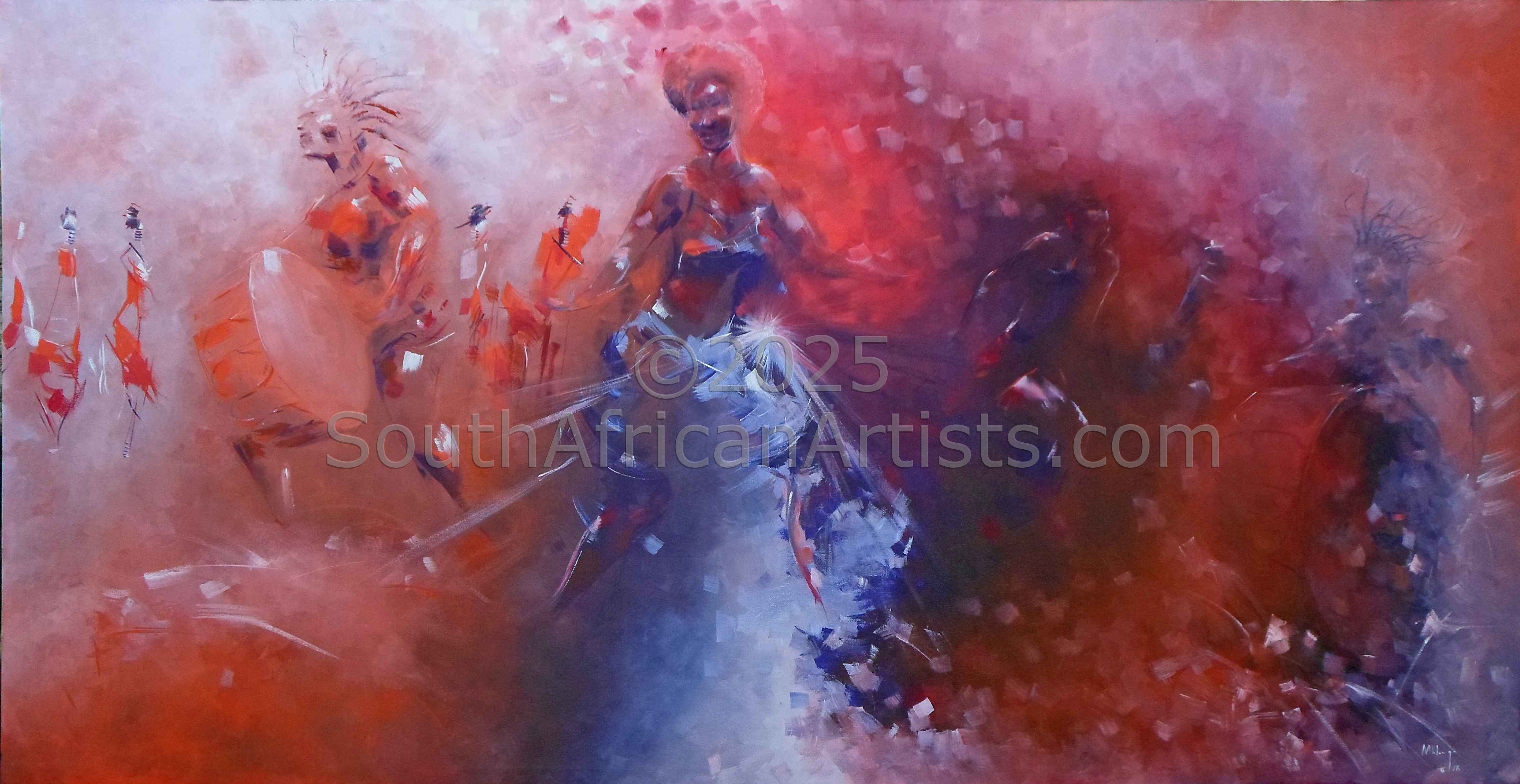 Mbongeni's art is rooted in music. He expresses his musical feelings on a canvas. He visualize and illustrate the sound,the tone and the mood engaging and entertaining the viewer with visual musical experience Price Range US$ 58-2,628 Exhibitions *1995 - Group Exhibition at African Art Centre Education National Diploma in Art and Design People who chose Mbongeni's work also chose work by: Find other: