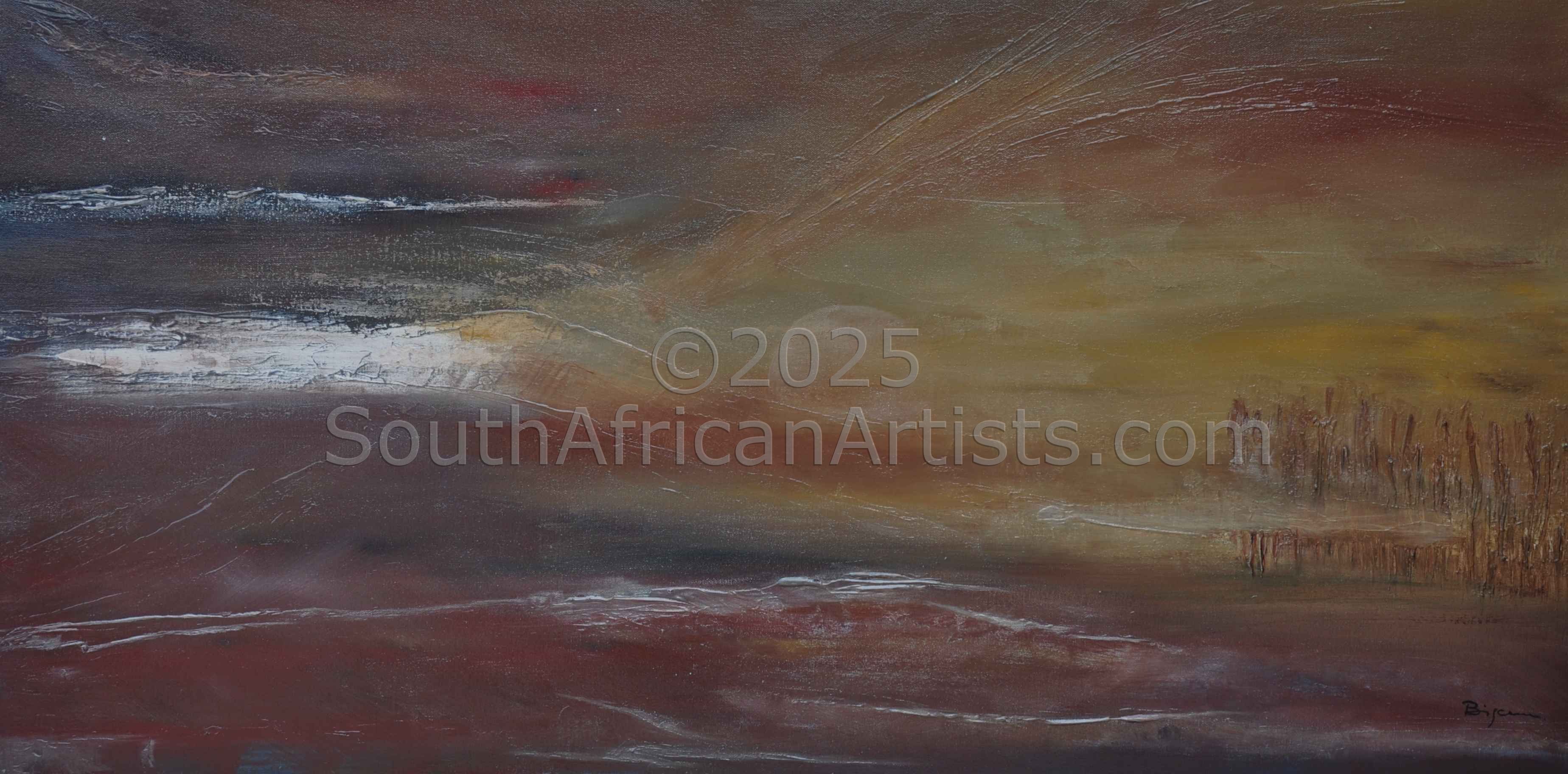 In 2003 she joined the Ernst de Jong Academy of Fine Art. Since becoming an “Artist of the Academy” she has held frequent exhibitions and at the last exhibition at the Academy Gallery at the State Theater she had a sell out of her paintings. Now as a solo artist many other successful exhibitions followed in South Africa. She is represented in Private Collections in France, Germany,Belgium and South Africa. She is also very proud to be represented,in the private house and office of SA president and SA vice president. Her nomadic life has left it's mark on her work and she has developed an unmistakable and sophisticated quality greatly sought after by art connoisseurs.