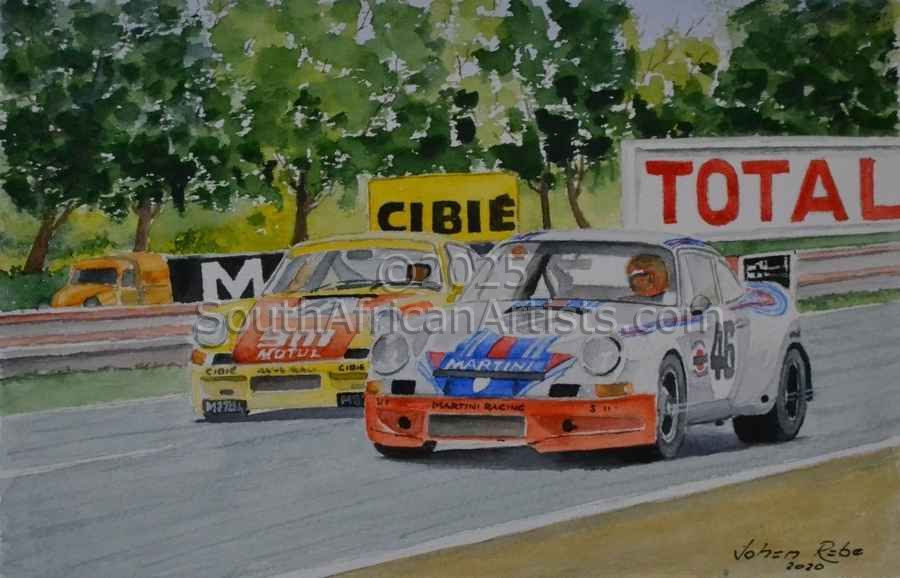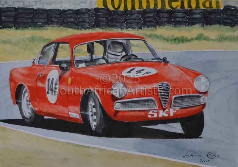 Johan has become a Member of the Guild of Motoring Artists (UK) in 2014 but has since resigned to concentrate on the South African market.He write regular articles about his paintings of motoring/motorsport subjects for the SA Car Clubs magazine. Since 2016 he has again started to work in watercolours as well. His work was accepted by a local Art Gallery, Bottega, where he has a permanent stand with his non-motoring paintings.