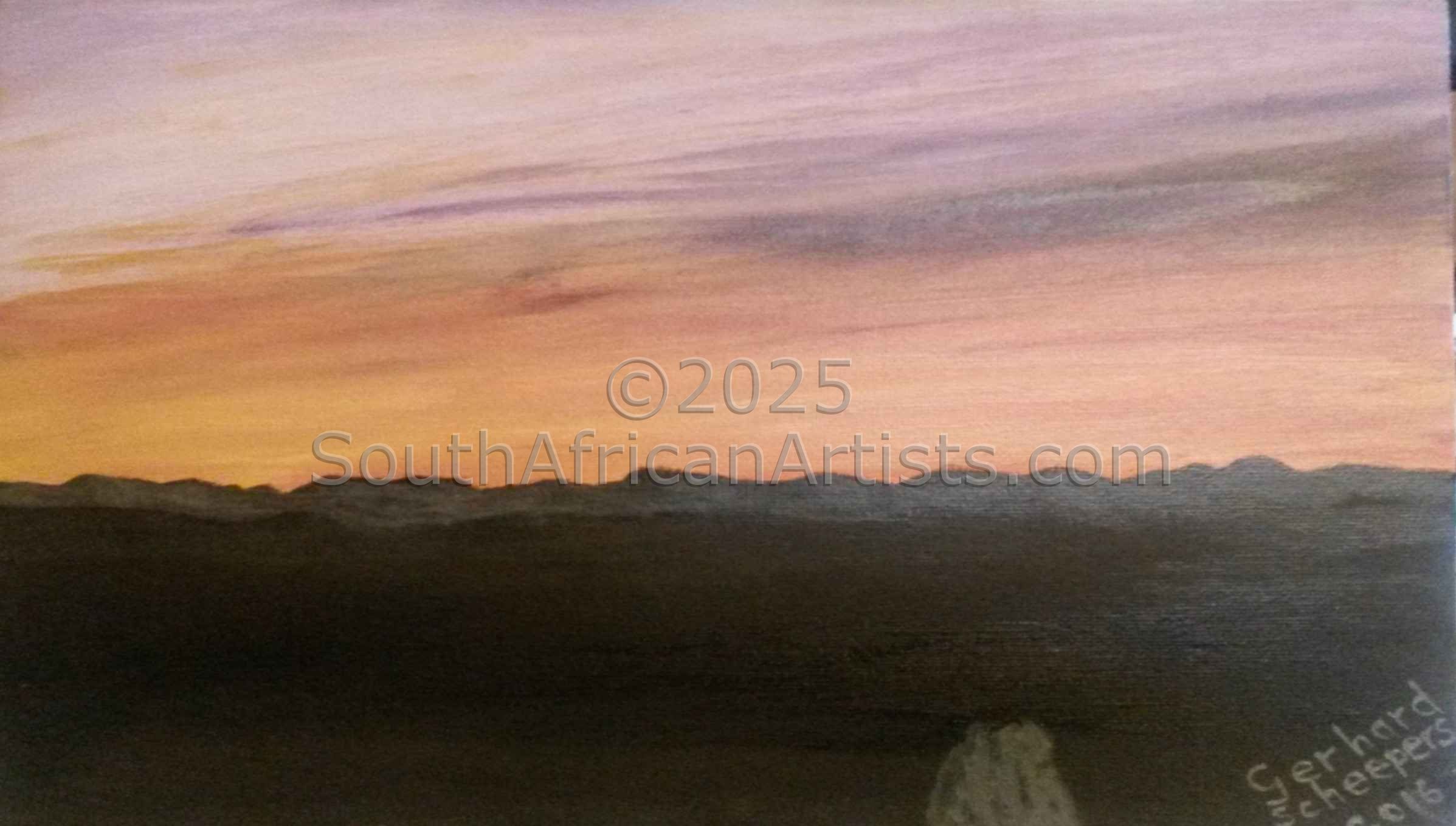 Gerhard Scheepers is a nature person, taking in the natural beauty all around him. It is therefore not surprising that he specialises in landscapes of all varieties, often combining them with wildlife. He enjoys producing vivid, true to life paintings. Price Range US$ 55-404 Exhibitions First exibition planned for December 2007. Education Graduate People who chose Gerhard's work also chose work by: Find other: