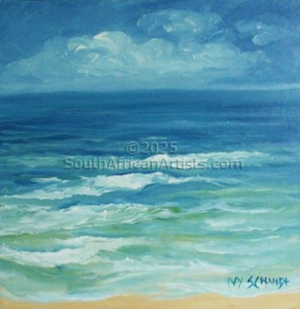 Ivy Schmidt, Born 6th February 1917 - died 27th November 2008. Always an individual - swimming upstream. Ivy never painted to please anyone but herself. She saw the world in her own hues. Crazy, brilliant, fiery sunrises over the Indian ocean. Taking 'mental photographs' of all her favourite images, Ivy would retire to her studio and paint like crazy, sometimes all through the night.