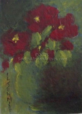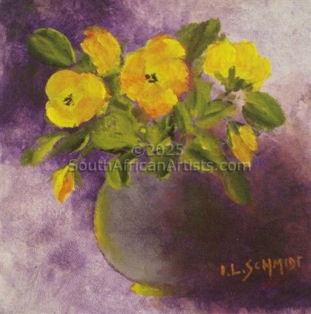 Ivy Schmidt, Born 6th February 1917 - died 27th November 2008. Always an individual - swimming upstream. Ivy never painted to please anyone but herself. She saw the world in her own hues. Crazy, brilliant, fiery sunrises over the Indian ocean. Taking 'mental photographs' of all her favourite images, Ivy would retire to her studio and paint like crazy, sometimes all through the night.